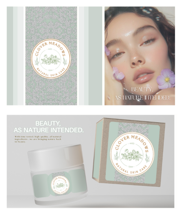 Before our collaboration, Clover Meadows lacked a clear visual direction and distinct voice. Their early designs felt impersonal — too polished, not soulful. The challenge was to translate their core values of purity, honesty, and slow beauty into an identity that evoked warmth, trust, and timeless simplicity.